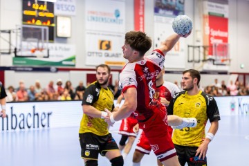 Und es ging flott los beim Duell der beiden Zweitligisten. Jonas Wilde entschärfte in der 1.Minute einen Siebenmeter von Coburgs Rechtsaußen Florian Billek. Ein Fingerzeig für die Leistung, die Wilde im Verlauf der ersten Halbzeit aufs Parkett zauberte. Auf Seiten der Gastgeber war neben Wilde ganz klar Kreisläufer Valentino Duvancic der Mann der ersten zehn Minuten. Denn während sich beide Teams nichts schenkten und Kopf an Kopf, über 2:2 (5.) und 4:4 (9.), die ersten Minuten absolvierten, war Duvancic nicht nur zweifacher Torschütze, sondern auch zwei Mal auf der Strafbank. Dadurch war Ferndorfs Coach Ceven Klatt bereits früh in der Partie gezwungen, die Hauptlast des Verteidigens im Innenblock anders zu verteilen. Das übernahmen fortan der Kapitän, Mattis Michel, und Daniel Hideg. „Die erste Halbzeit waren wir griffig in der Abwehr und hatten eine gute Torwartleistung“, stellte TuS-Coach Ceven Klatt auch den beiden auf Halb verteidigenden Fabian Hecker und Gabriel Viana ein gutes Zeugnis aus. Doch keinem der beiden Teams gelang es, sich mal mit zwei Toren abzusetzen. Und so war auch Coburgs Coach Anel Mahmutefendic mit dem Auftritt seines Teams in der ersten Halbzeit nicht wirklich zufrieden, ergänzte aber: „Das war ein typisches erstes Saisonspiel. Wir kommen nervös aus der Vorbereitung heraus. Testspiele sind halt doch etwas ganz anderes!“ Beim 8:10 in der 20.Minute war es dann zum ersten Mal einem Team gelungen, mit mehr als einem Tor in Führung zu gehen. Die Gäste aus dem Frankenland legten dann auch noch das 8:11 nach. Doch was die Jungs vom Kindelsberg an diesem Abend ganz besonders auszeichnete, war der unermüdliche Kampfgeist. Zwei Mal Josip Eres von der Siebenmeter-Linie und der Taktgeber im Ferndorfer Spiel, Janko Kevic, mit einem Schuss aus dem Rückraum, sorgten innerhalb weniger Minuten für den Ausgleich. In der verbleibenden Spielzeit bis zum Pausentee wurde es teils vogelwild. Hüben wie drüben wurden Chancen vergeben. Und am Ende wäre wohl ein Unentschieden das gerechteste Ergebnis gewesen. Doch bereits zu diesem Zeitpunkt zeigten sich die Gelb-Schwarzen als eine Spur abgezockter. Linksaußen Felix Dettenthaler und Kreisläufer Nils Röller sorgten für den Pausenstand von 12:14.