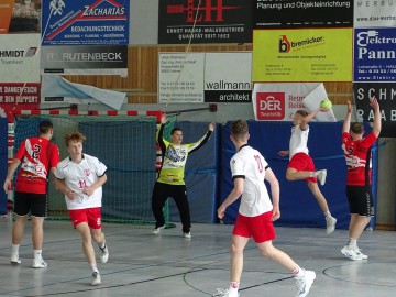 Die Jungs traten am Sonntag in der Kreisqualifikation gegen die SGSH Dragons in Schalksmühle an. Beim Anpfiff waren die Jungs direkt wach und konnten so mit einem Lauf auf 0:3 stellen. Dann wurde es etwas hektisch und es kam zu einigen technischen Fehlern, so dass es in der 7 Minute wieder 4:3 für den Gastgeber stand.